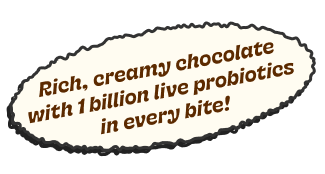 Scrumptious chocolate bites with more fiber, less sugar and billions of live probiotics.