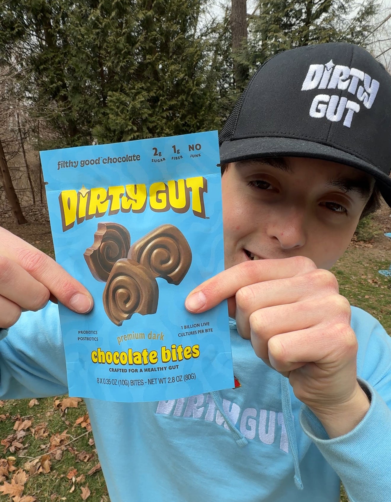 DIRTY GUT is his vision of chocolate reinvented. Delicous, snack-sized bites with live gut friendly probiotic cultures and free from refined sugars, fillers, and artificial junk.